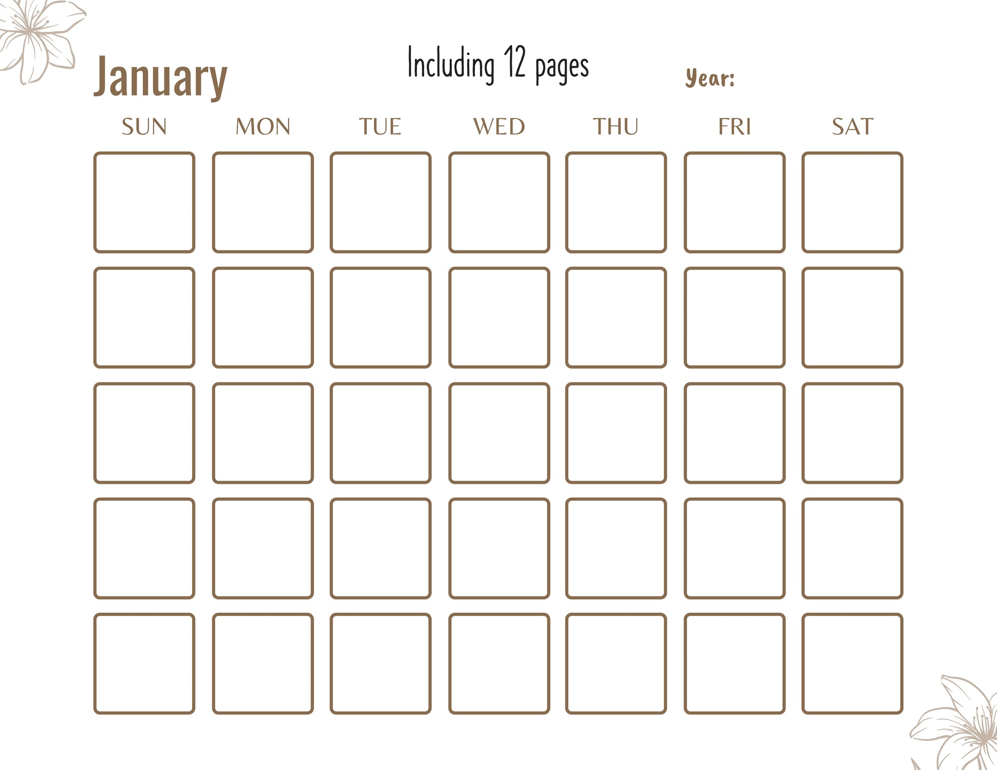 Blank Monthly Calendar